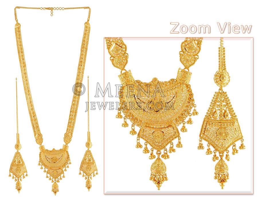 More approach for the purpose of gold indian bridal patta set stbr gold Indian Jewellery for women: Contemporary design long necklace (Rani Haar) and earrings (3 piece set), crafted in 22 karat yellow gold with an attractive heart motif, daisy floral details and drop ball chains.