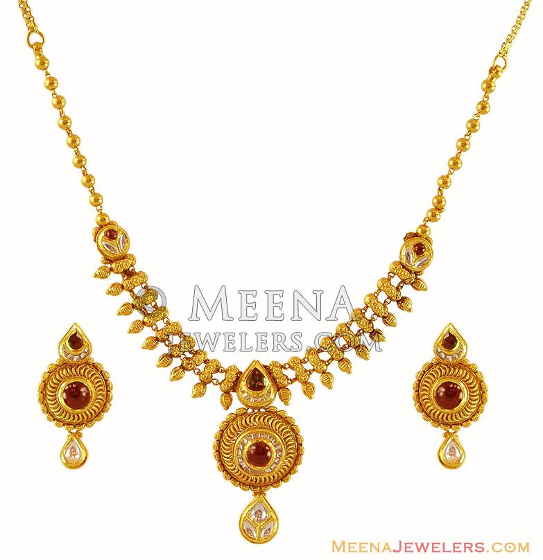 A great deal more notion meant for gold temple jewellery necklace sets indian gold 22Kt Gold Necklace set (Indian Jewelry Sets) with Precious and semi precious colored stones including Garnet, Ruby, Emerald, Coral, Sapphire , Amethyst, Tourmaline , polki. Largest Variety available in Bridal Jewelry Coll